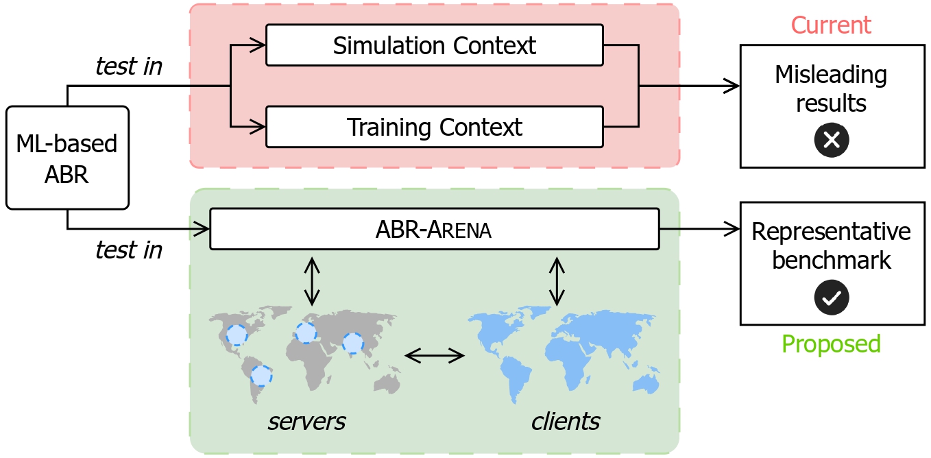 To address this gap, we present ABR-Arena, a global testing platform that enables researchers to evaluate the performance of ABR algorithms across a diverse set of regions around the globe. As a result of its worldwide coverage, ABR-Arena can reveal the performance shortcomings of several state-of-the-art ML-based approaches. It is extensible and easy to deploy in additional locations. We will make ABR-Arena available to the community to support the development of new ML-based approaches and to facilitate meaningful improvements to existing algorithms.
